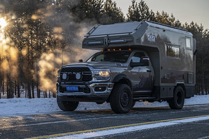 德国MAN 4×4指挥者越野房车采用TGM 13.290 4x4 BL德国曼底盘打造,最大功率213千瓦/290马力,最大扭矩1,150 牛顿米,轴距3650mm,最高车速143.5 公里/小时,MAN 柴油共轨 6 缸涡轮增压发动机,6.9 升排量,采用EDC电子控制共轨喷射技术,配单级涡轮增压,每缸采用独立缸盖和4气门技术,配SCR尾气后处理系统以及颗粒捕捉器DPF且不带有EGR废气再循环系统。MAN TipMatic® 12 12 OD 手自一体变速箱,全时四驱功能。动力性能、通过性以及越野性能十分强悍。